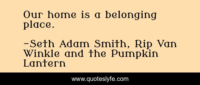 This page presents the quote "Our home is a belonging place.". Author of this quote is Seth Adam Smith, Rip Van Winkle and the Pumpkin Lantern. This quote is about home, belonging, belonging-place, family,.
