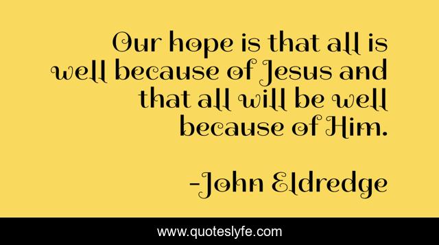This page presents the quote "Our hope is that all is well because of Jesus and that all will be well because of Him.". Author of this quote is John Eldredge. .