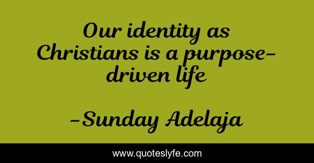 "Sunday Adelaja Quotes." Quoteslyfe.com, 2025. Fri. 05 Dec. 2025. <https://www.quoteslyfe.com/quote/Our-identity-as-Christians-is-a-purpose-46232>.