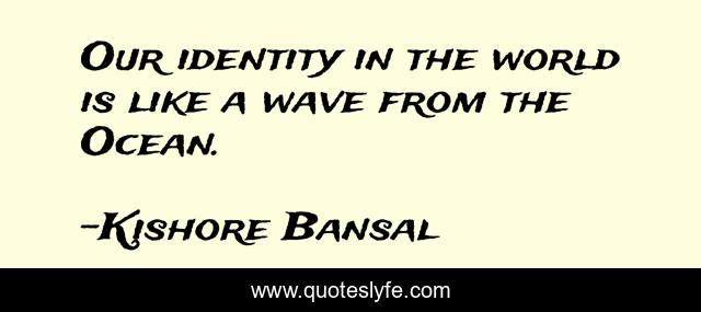 This page presents the quote "Our identity in the world is like a wave from the Ocean.". Author of this quote is Kishore Bansal. This quote is about world, ocean, identity, wave,.