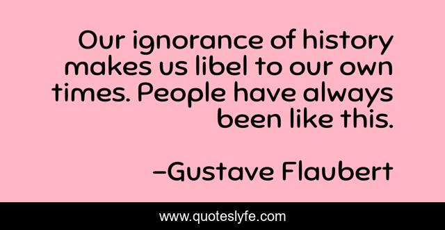 This page presents the quote "Our ignorance of history makes us libel to our own times. People have always been like this.". Author of this quote is Gustave Flaubert. .