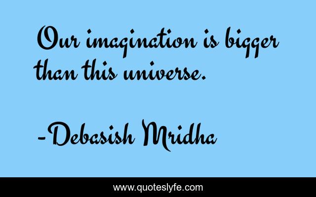 "Debasish Mridha Quotes." Quoteslyfe.com, 2025. Fri. 05 Dec. 2025. <https://www.quoteslyfe.com/quote/Our-imagination-is-bigger-than-this-universe-75217>.