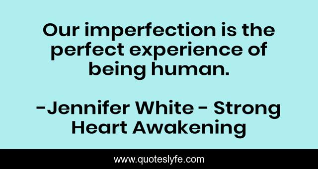 This page presents the quote "Our imperfection is the perfect experience of being human.". Author of this quote is Jennifer White - Strong Heart Awakening. This quote is about love, spirituality, human-life, human-nature, quotes, happiness, affection,.