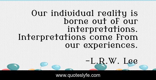 This page presents the quote "Our individual reality is borne out of our interpretations. Interpretations come from our experiences.". Author of this quote is L.R.W. Lee. .