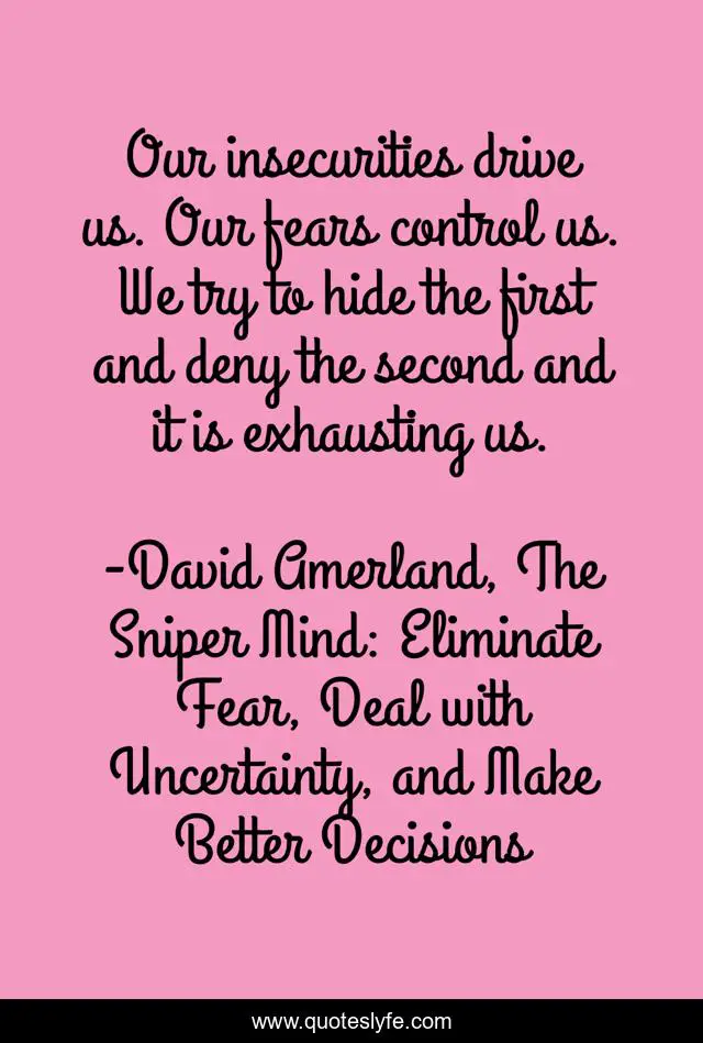 "David Amerland, The Sniper Mind: Eliminate Fear, Deal with Uncertainty, and Make Better Decisions Quotes." Quoteslyfe.com, 2025. Sun. 07 Dec. 2025. <https://www.quoteslyfe.com/quote/Our-insecurities-drive-us-Our-fears-control-159435>.