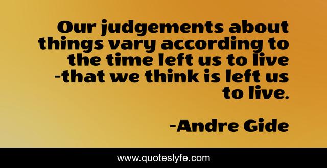 This page presents the quote "Our judgements about things vary according to the time left us to live -that we think is left us to live.". Author of this quote is Andre Gide. .
