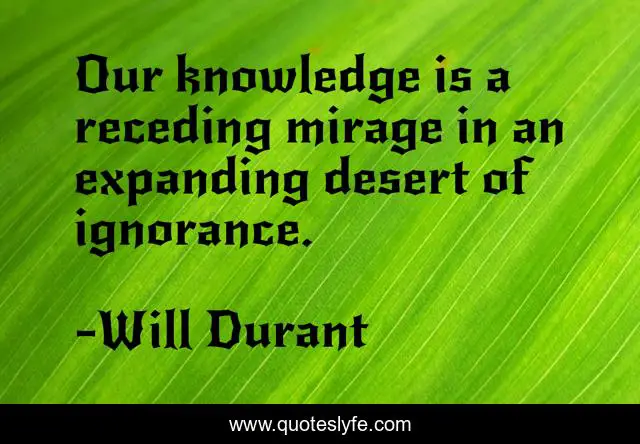 This page presents the quote "Our knowledge is a receding mirage in an expanding desert of ignorance.". Author of this quote is Will Durant. .