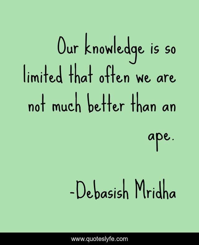 This page presents the quote "Our knowledge is so limited that often we are not much better than an ape.". Author of this quote is Debasish Mridha. This quote is about limited-knowledge, knowledge, philosophy, debasish-mridha, quotes, inspirational, enthusiasm, debasish-mridha-m-d,.