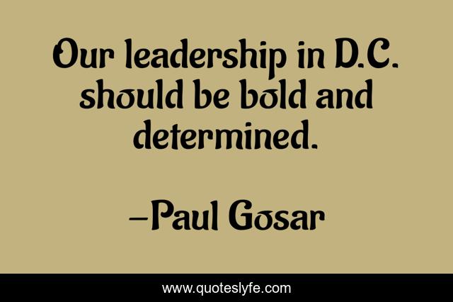 This page presents the quote "Our leadership in D.C. should be bold and determined.". Author of this quote is Paul Gosar. This quote is about determined, bold,.