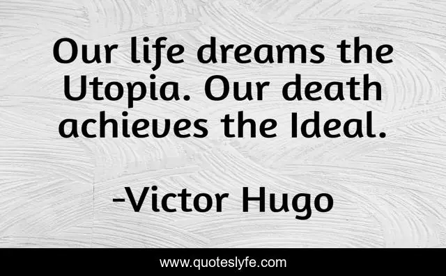 This page presents the quote "Our life dreams the Utopia. Our death achieves the Ideal.". Author of this quote is Victor Hugo. This quote is about life, death, utopia,.