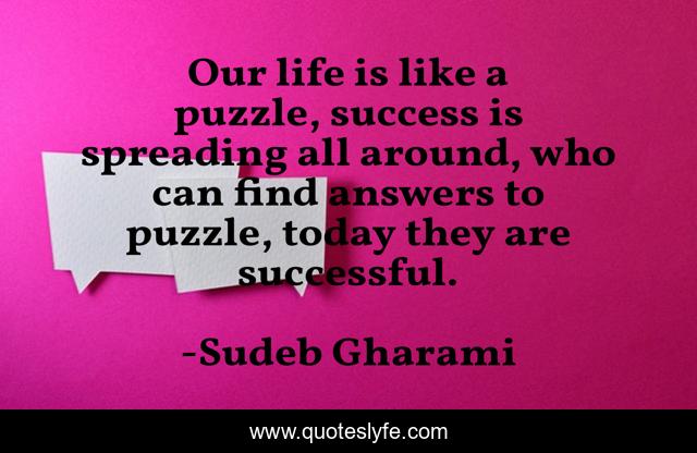 This page presents the quote "Our life is like a puzzle, success is spreading all around, who can find answers to puzzle, today they are successful.". Author of this quote is Sudeb Gharami. This quote is about successful, life, success, today,.
