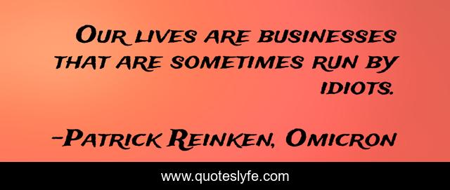This page presents the quote "Our lives are businesses that are sometimes run by idiots.". Author of this quote is Patrick Reinken, Omicron. This quote is about life-and-living, idiocy, stupidity, mistakes,.