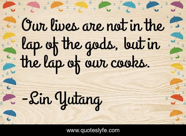 This page presents the quote "Our lives are not in the lap of the gods, but in the lap of our cooks.". Author of this quote is Lin Yutang. This quote is about gods, our lives, cooks,.