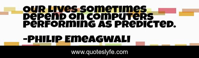 This page presents the quote "Our lives sometimes depend on computers performing as predicted.". Author of this quote is Philip Emeagwali. This quote is about our lives, sometimes, depend,.