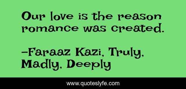 "Faraaz Kazi, Truly, Madly, Deeply Quotes." Quoteslyfe.com, 2025. Tue. 09 Dec. 2025. <https://www.quoteslyfe.com/quote/Our-love-is-the-reason-romance-was-111414>.