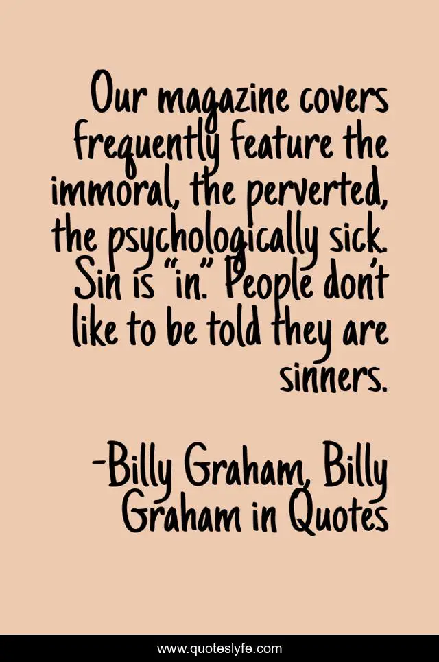 "Billy Graham, Billy Graham in Quotes Quotes." Quoteslyfe.com, 2025. Mon. 08 Dec. 2025. <https://www.quoteslyfe.com/quote/Our-magazine-covers-frequently-feature-the-immoral-153008>.