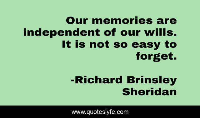This page presents the quote "Our memories are independent of our wills. It is not so easy to forget.". Author of this quote is Richard Brinsley Sheridan. .
