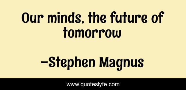 This page presents the quote "Our minds, the future of tomorrow". Author of this quote is Stephen Magnus. This quote is about future, mind, tomorrow,.