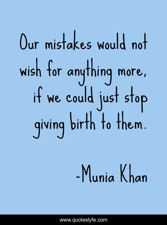 This page presents the quote "Our mistakes would not wish for anything more, if we could just stop giving birth to them.". Author of this quote is Munia Khan. This quote is about wise-words, birth, anything, giving, wise-sayings, stop, wisdom, mistakes, wrongdoing,.