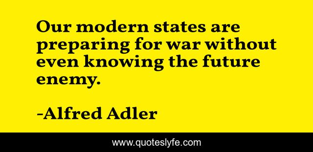 This page presents the quote "Our modern states are preparing for war without even knowing the future enemy.". Author of this quote is Alfred Adler. This quote is about knowing, enemy, future,.