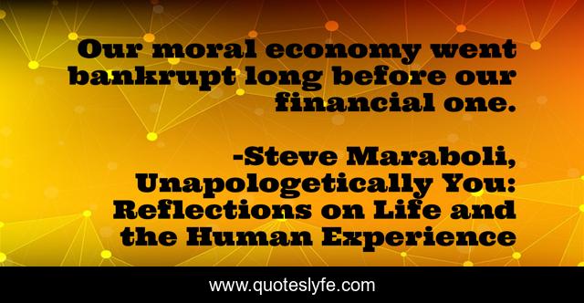 This page presents the quote "Our moral economy went bankrupt long before our financial one.". Author of this quote is Steve Maraboli, Unapologetically You: Reflections on Life and the Human Experience. This quote is about economy-bankrupt, life, moral, finance, success,.