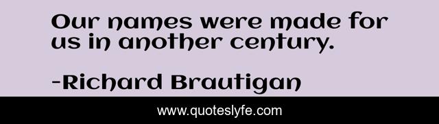 This page presents the quote "Our names were made for us in another century.". Author of this quote is Richard Brautigan. This quote is about freedom, ancestry, names, time,.