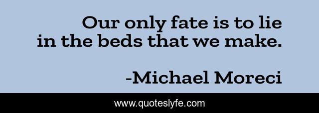 This page presents the quote "Our only fate is to lie in the beds that we make.". Author of this quote is Michael Moreci. .