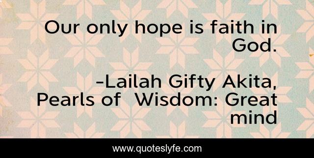 "Lailah Gifty Akita, Pearls of Wisdom: Great mind Quotes." Quoteslyfe.com, 2025. Mon. 08 Dec. 2025. <https://www.quoteslyfe.com/quote/Our-only-hope-is-faith-in-God-85379>.