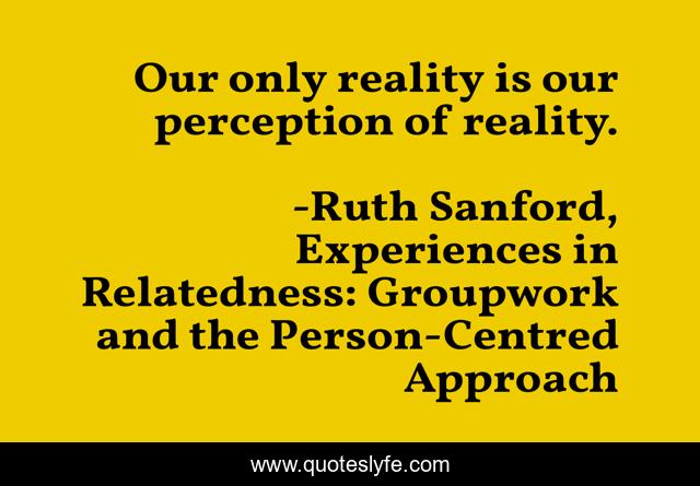 "Ruth Sanford, Experiences in Relatedness: Groupwork and the Person-Centred Approach Quotes." Quoteslyfe.com, 2025. Fri. 05 Dec. 2025. <https://www.quoteslyfe.com/quote/Our-only-reality-is-our-perception-of-197177>.