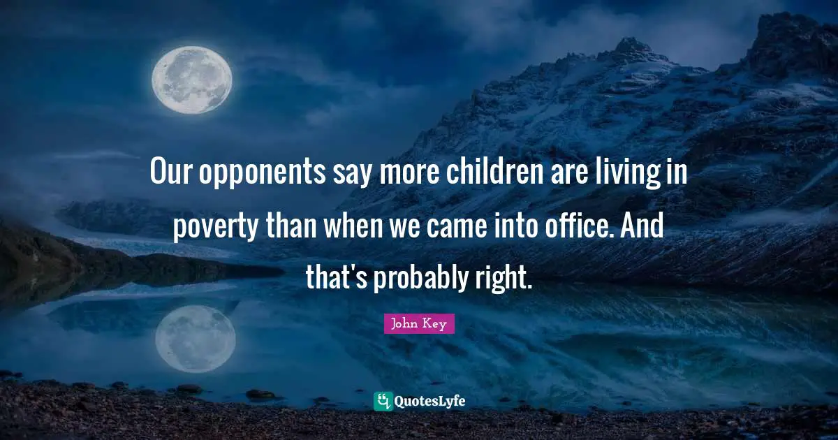 This page presents the quote "Our opponents say more children are living in poverty than when we came into office. And that's probably right.". Author of this quote is John Key. This quote is about opponents, office, poverty, children,.