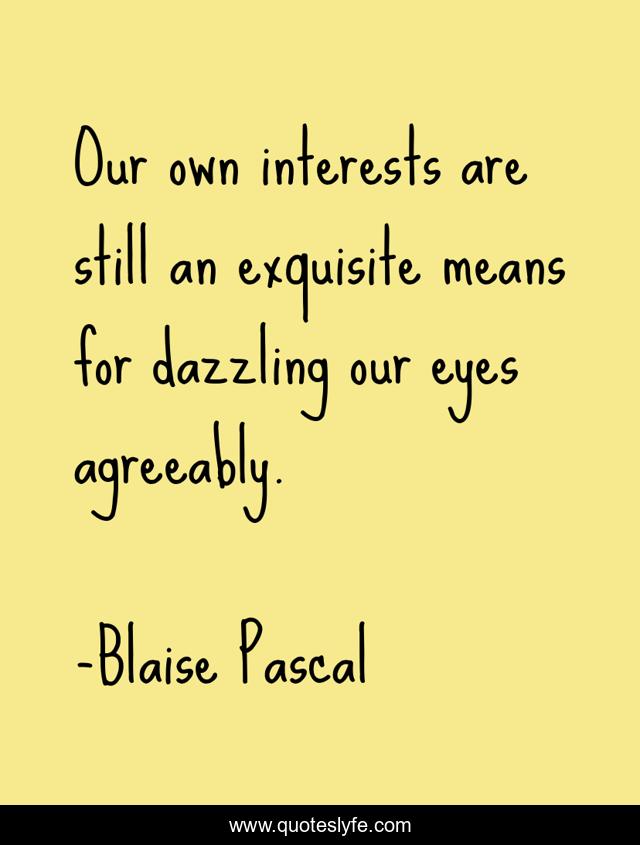 This page presents the quote "Our own interests are still an exquisite means for dazzling our eyes agreeably.". Author of this quote is Blaise Pascal. This quote is about self, knowledge,.