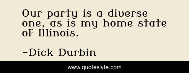 This page presents the quote "Our party is a diverse one, as is my home state of Illinois.". Author of this quote is Dick Durbin. This quote is about home, state, party,.