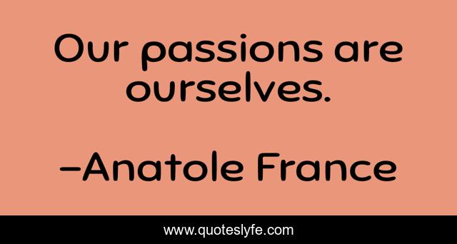 This page presents the quote "Our passions are ourselves.". Author of this quote is Anatole France. .