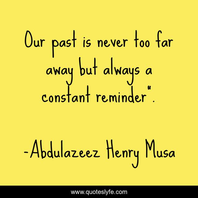 This page presents the quote "Our past is never too far away but always a constant reminder”.". Author of this quote is Abdulazeez Henry Musa. .