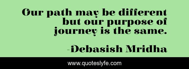 This page presents the quote "Our path may be different but our purpose of journey is the same.". Author of this quote is Debasish Mridha. This quote is about life, love, knowledge, inspirational, intelligence, philosophy, wisdom, quotes, affection,.