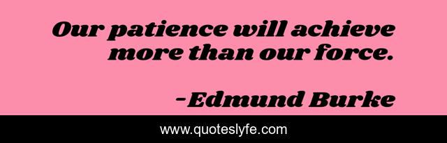 This page presents the quote "Our patience will achieve more than our force.". Author of this quote is Edmund Burke. .