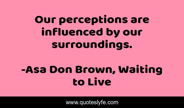 "Asa Don Brown, Waiting to Live Quotes." Quoteslyfe.com, 2025. Mon. 08 Dec. 2025. <https://www.quoteslyfe.com/quote/Our-perceptions-are-influenced-by-our-surroundings-36189>.