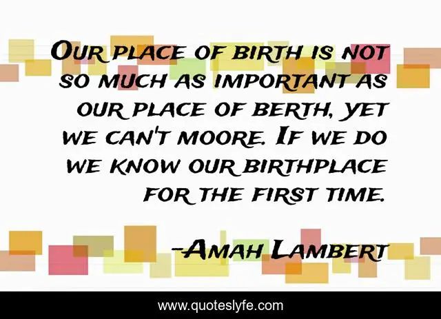This page presents the quote "Our place of birth is not so much as important as our place of berth, yet we can't moore. If we do we know our birthplace for the first time.". Author of this quote is Amah Lambert. This quote is about life, personal-leadership, success, business, personal-growth, skills, work, motivation, talents,.