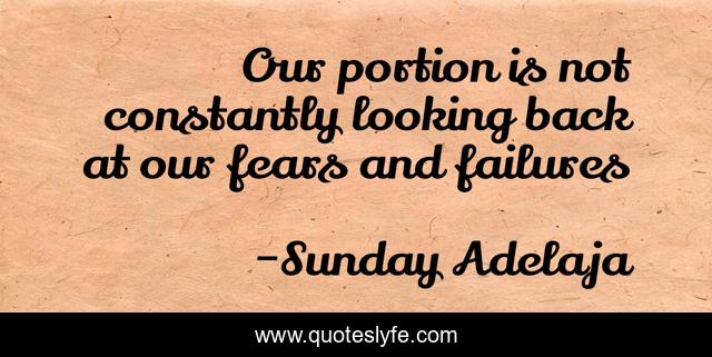 This page presents the quote "Our portion is not constantly looking back at our fears and failures". Author of this quote is Sunday Adelaja. This quote is about constant, fears, calling, portion, fulfillment, failures, purpose,.