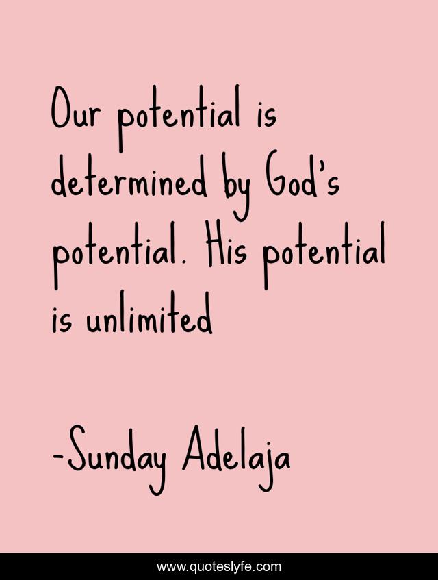 "Sunday Adelaja Quotes." Quoteslyfe.com, 2025. Mon. 08 Dec. 2025. <https://www.quoteslyfe.com/quote/Our-potential-is-determined-by-God-s-188192>.