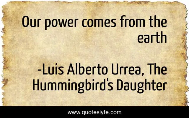 "Luis Alberto Urrea, The Hummingbird's Daughter Quotes." Quoteslyfe.com, 2025. Fri. 05 Dec. 2025. <https://www.quoteslyfe.com/quote/Our-power-comes-from-the-earth-176475>.