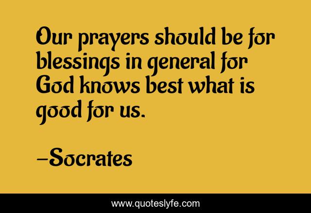 This page presents the quote "Our prayers should be for blessings in general for God knows best what is good for us.". Author of this quote is Socrates. .