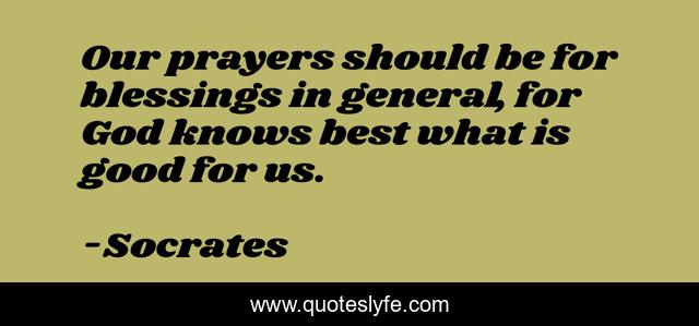 This page presents the quote "Our prayers should be for blessings in general, for God knows best what is good for us.". Author of this quote is Socrates. This quote is about god, good, best,.