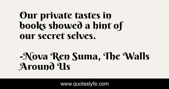 "Nova Ren Suma, The Walls Around Us Quotes." Quoteslyfe.com, 2025. Sat. 06 Dec. 2025. <https://www.quoteslyfe.com/quote/Our-private-tastes-in-books-showed-a-43063>.