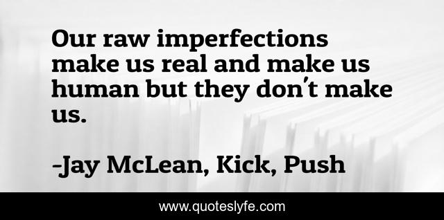 This page presents the quote "Our raw imperfections make us real and make us human but they don't make us.". Author of this quote is Jay McLean, Kick, Push. This quote is about imperfections, human,.
