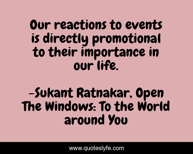 "Sukant Ratnakar, Open The Windows: To the World around You Quotes." Quoteslyfe.com, 2025. Fri. 05 Dec. 2025. <https://www.quoteslyfe.com/quote/Our-reactions-to-events-is-directly-promotional-179911>.