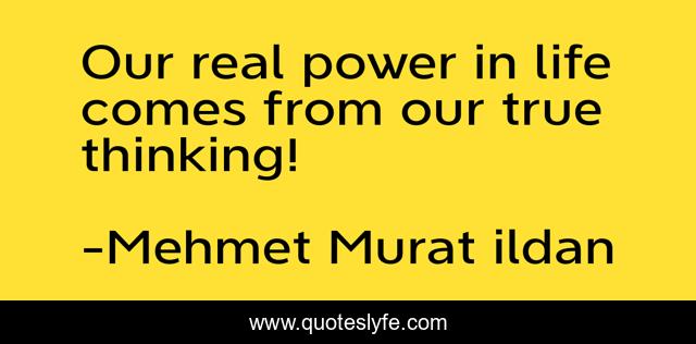 This page presents the quote "Our real power in life comes from our true thinking!". Author of this quote is Mehmet Murat ildan. .