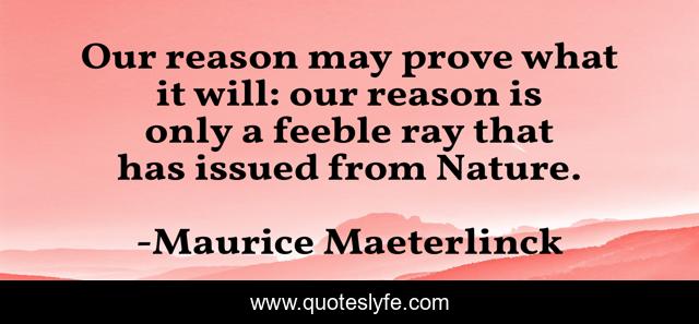 This page presents the quote "Our reason may prove what it will: our reason is only a feeble ray that has issued from Nature.". Author of this quote is Maurice Maeterlinck. This quote is about reason, feeble, prove,.