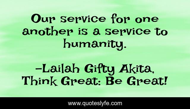 "Lailah Gifty Akita, Think Great: Be Great! Quotes." Quoteslyfe.com, 2025. Fri. 05 Dec. 2025. <https://www.quoteslyfe.com/quote/Our-service-for-one-another-is-a-195946>.