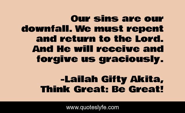 "Lailah Gifty Akita, Think Great: Be Great! Quotes." Quoteslyfe.com, 2025. Fri. 05 Dec. 2025. <https://www.quoteslyfe.com/quote/Our-sins-are-our-downfall-We-must-62515>.